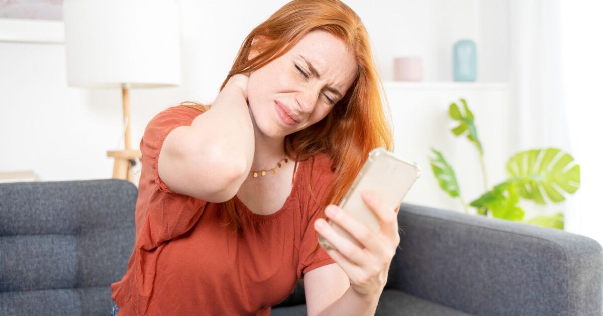 Оттук идва и болката, изпитвана след дълги часове на взиране надолу към телефона - явление, което обичайно се нарича "технологичен врат".