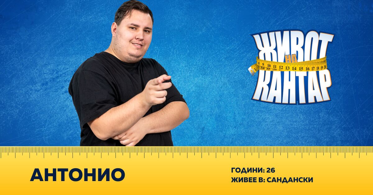 Антонио вярва, че е време за промяна. Иска да бъде пример за хората в неговото положение. В „Живот на кантар“ има амбиция да свали поне 40 килограма, да възвърне самочувствието си и да спечели.